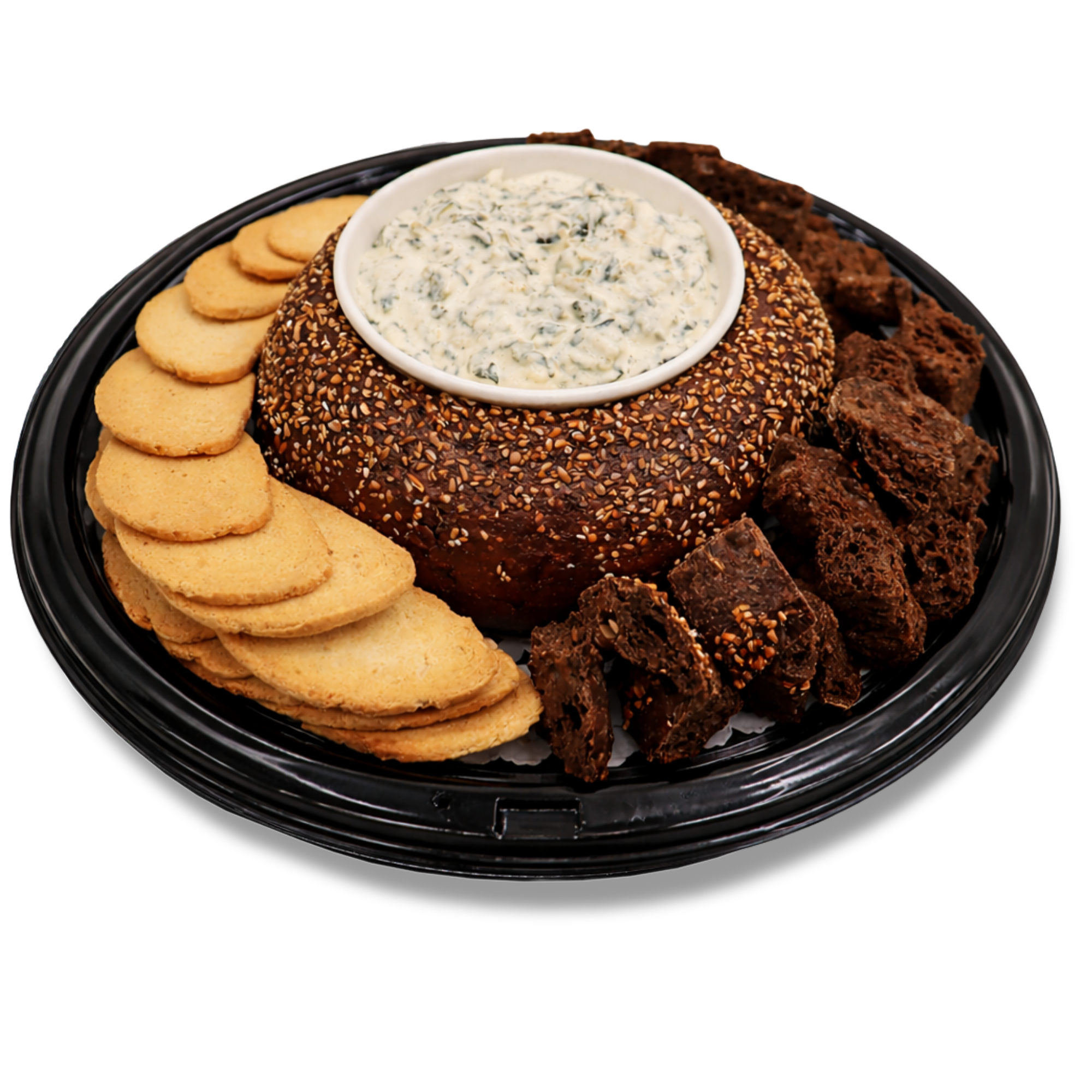 A classic creamy dip with Spinach and Parmesan Cheese served with Bread & Crostini.