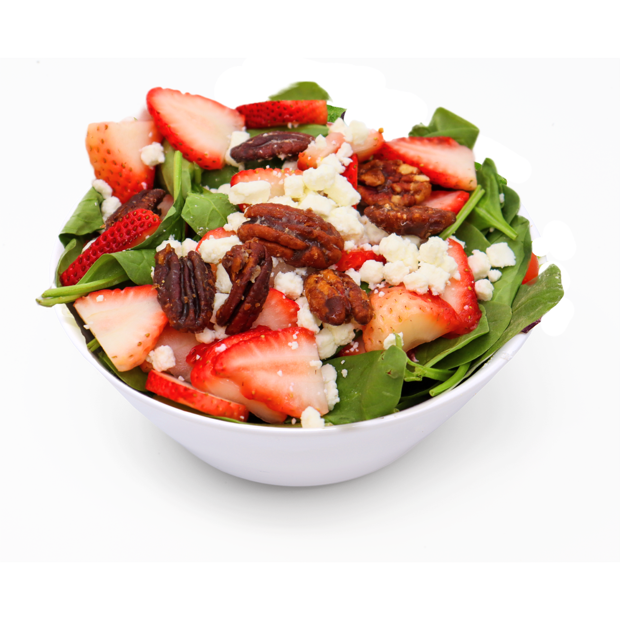 Baby Spinach with Strawberry, candied Pecans, Goat Cheese & a light Vinaigrette.